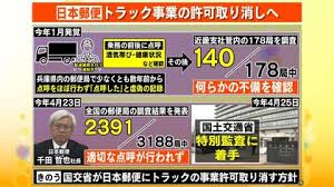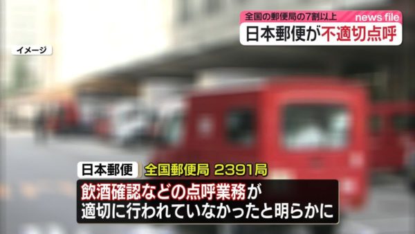発端は、兵庫県内の郵便局で数年間にわたる点呼の未実施の発覚。調査すると、全国で8割の郵便局で不適切な点呼や飲酒運転などが日常茶飯事であったことが明らかになった。