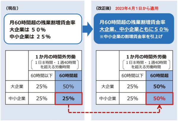 中小も60時間超残業割増率5割に