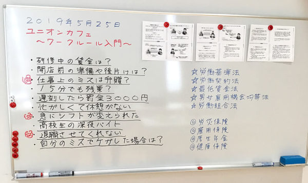 初のユニオンカフェ開催 次回は郵政労働者の話を聞く会 千葉市生涯学習センターで5月25日、ちば合同労組が企画した「ユニオンカフェ(ワークルール入門)」が行われました。クイズ形式で労働法規を学びました。次回ユニオンカフェは7月7日、「郵政労... -