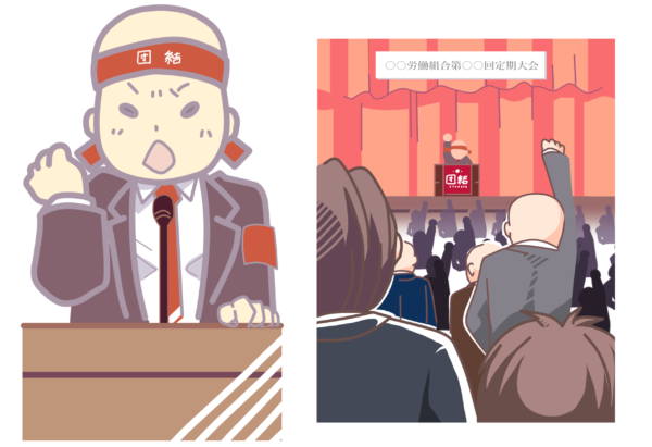 結成大会は、結成に至る経緯の報告、結成宣言・組合規約の採択、運動方針の決定、役員選挙などを行います。